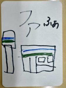 なるほど!これはすごい観察眼。年少さんに聞いても「ファミチキ…」とつぶやいてすぐにファとわかってくれました。こうして何セットものドレミファカードができて、テーブルの上からはみ出して「プラレールみたい…」と言いながら並べるのが好きですね。私もこのカードを書いたのはKちゃん、Sくん、と、もう大きくなった色々な生徒さんを懐かしく思い出します。不思議と子供の絵は子供同士何を書いたかわかるようですね。